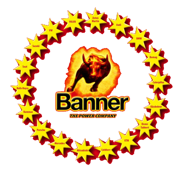 Η Banner προμηθεύει μεγάλους κατασκευαστές οχημάτων όπως BMW, VW, Audi, Porsche, Mercedes, Rolls-Royce, Seat, Aston Martin, Suzuki, Volvo, Kässbohrer, Liebherr και πολλούς άλλους.